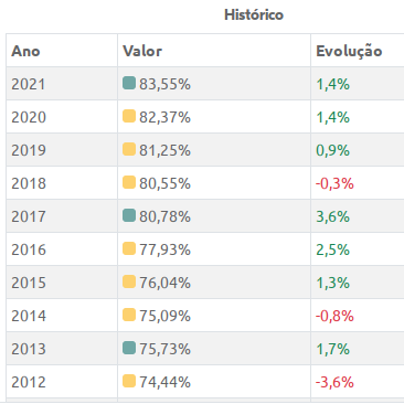 Para ter acesso aos detalhes do indicador e ao históricos dos valores, clique no círculo do indicador desejado e uma janela será aberta com todas as informações adicionais.